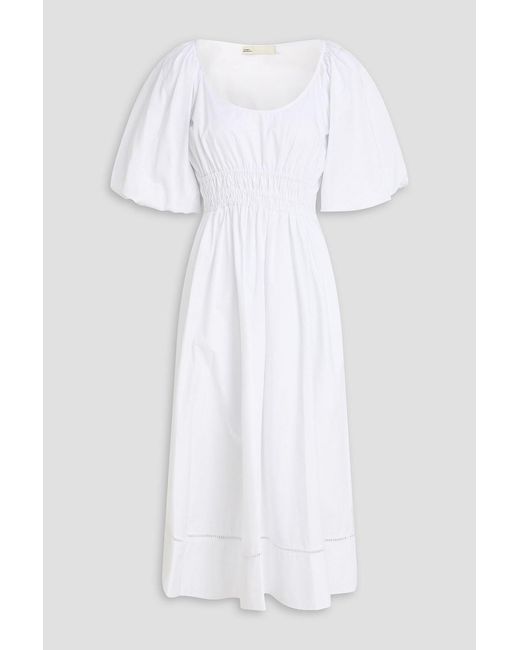 Women's White Shirred Cotton-poplin Midi Dress