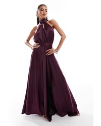 Go to ASOSJumpsuit by True Violet Done in one Halter neck Open back Zip-back fastening Wide-cut leg Fitted at the top, flowing at the bottom. Colour: white