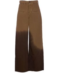 Go to BaltiniUma Wang wide-leg trousers crafted from mustard cotton and linen velvet. Featuring front button closure, belt loops, multiple pockets, front pleats, and an unlined interior. Material: 55%COTTON 45%LINEN. Made in: IT. Colour: brown