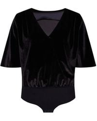 Go to FARFETCHBlack velvet panels sheer mesh high-leg cut Just a reminder that this piece must be tried on over your own garments. Size: XS. Gender: Female. Material:Spandex/Elastane/Polyester. Colour: black