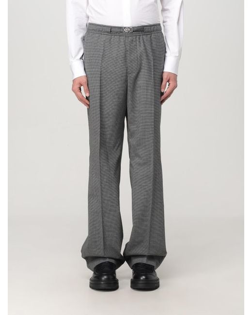 Tapered-Leg Houndstooth Wool Trousers - Grey