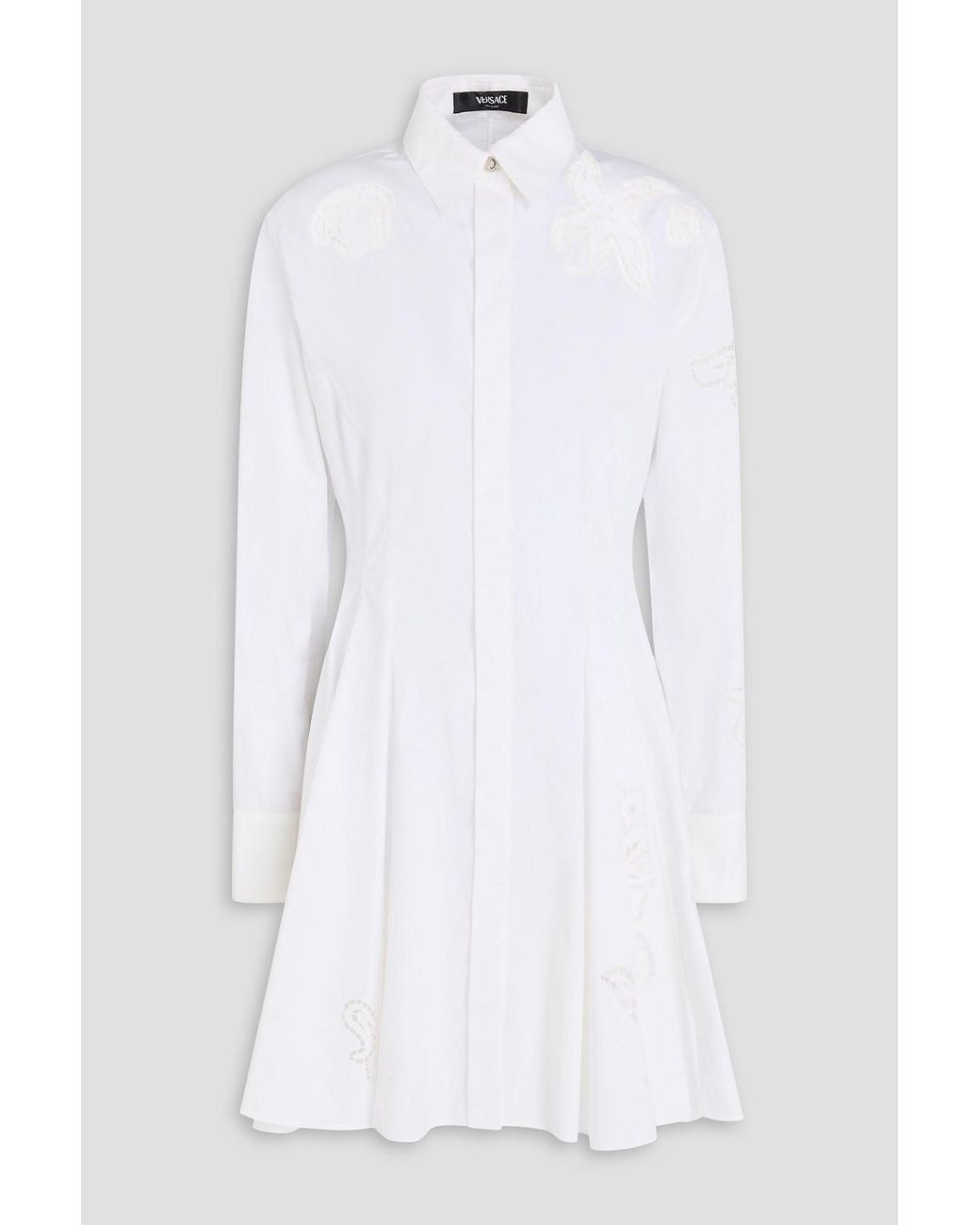 Women's White Pleated Cotton-Poplin Mini Shirt Dress