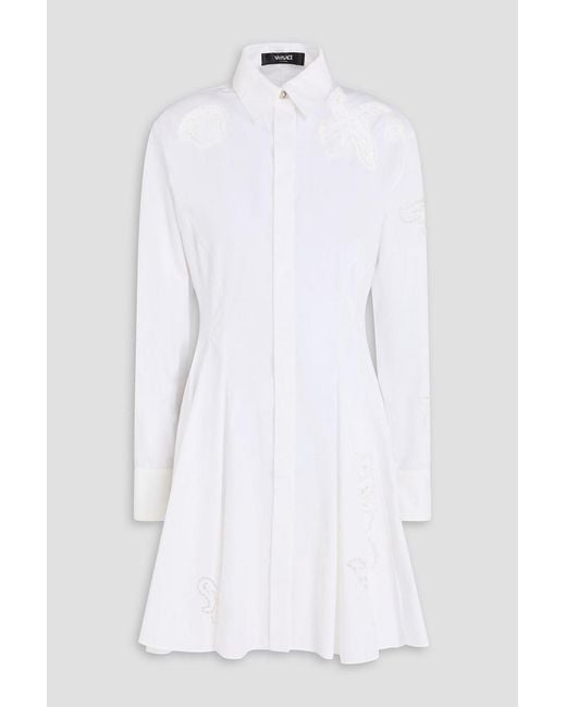 Embroidered Pleated Cotton-Poplin Mini Shirt Dress - Blue