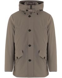 Go to BalardiWoolrich presents the ‘Arctic' parka, a quintessential piece for the modern man. Designed to combat the chill, this coat boasts a fur-lined hood, large front pockets for practicality, and a button closure for