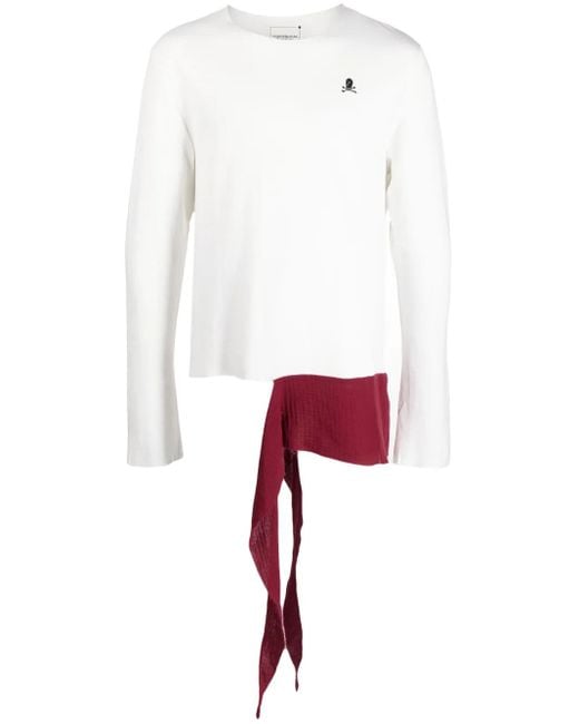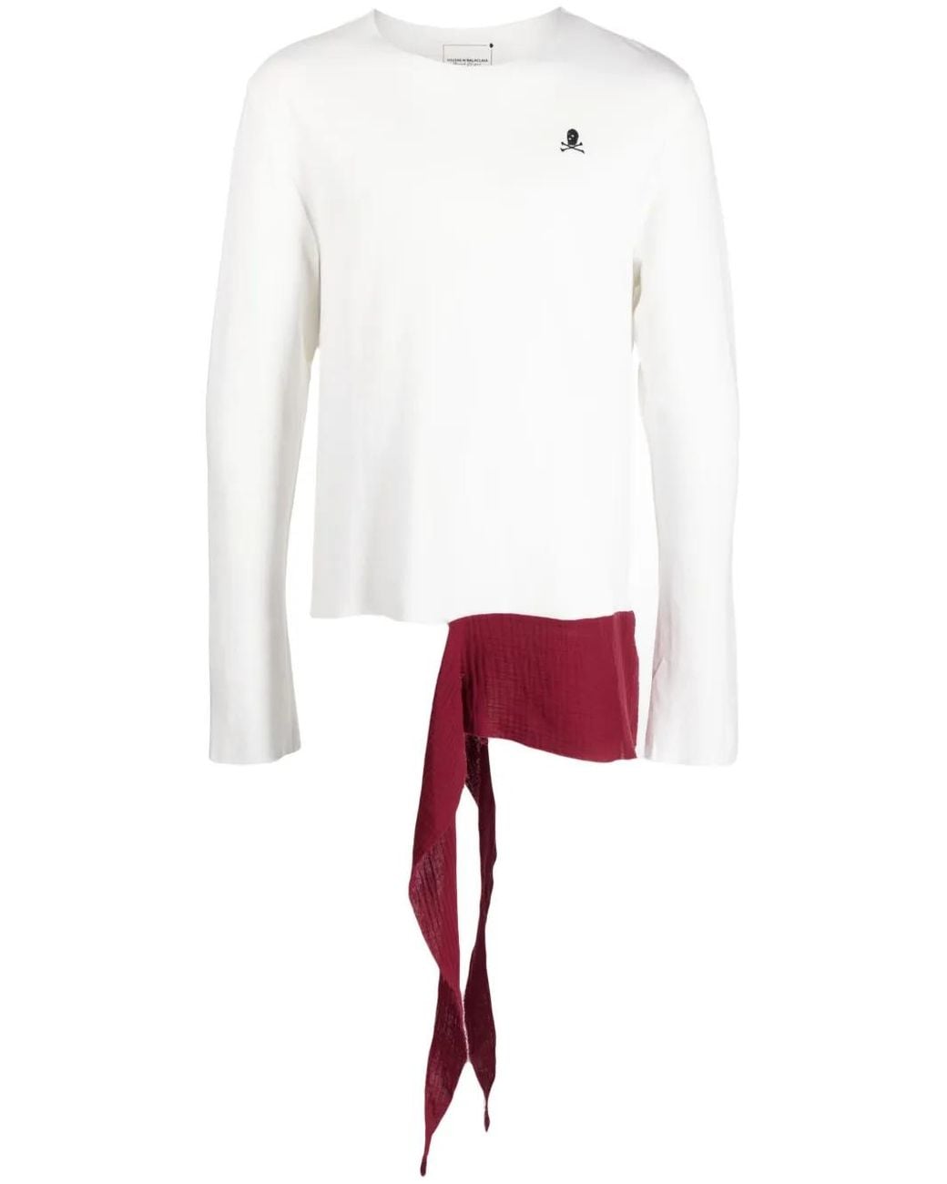White/black/burgundy cotton embroidered logo at the chest ripped detailing raw edge round neck long sleeves flared cuffs asymmetric hem raw-cut hem When buying this unisex item, keep in mind that it is graded in standard men's sizing. Size: S. Gender: Unisex. Material:Cotton. Colour: white