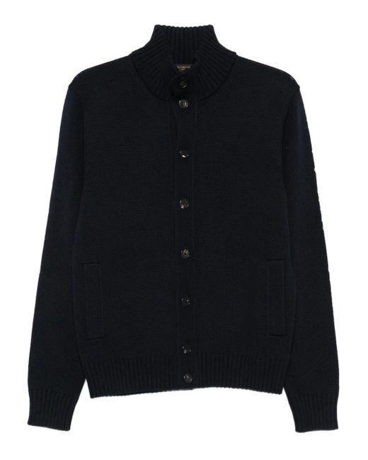 Dark blue button fastening high neck long sleeves side pockets Size: 46. Gender: Male. Material:Virgin Wool. Colour: black