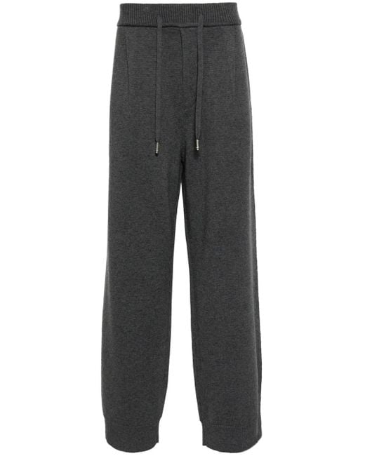 Charcoal grey ribbed drawstring waistband knitted construction patch detail two side welt pockets two rear patch pockets ribbed ankles wide leg Size: 44. Gender: Male. Material:Wool/Acrylic/Nylon. Colour: grey