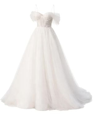 Westwood Off-Shoulder Lace-Sleeve Maxi Dress - White