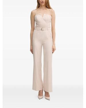 Striped Belted Jumpsuit - Natural