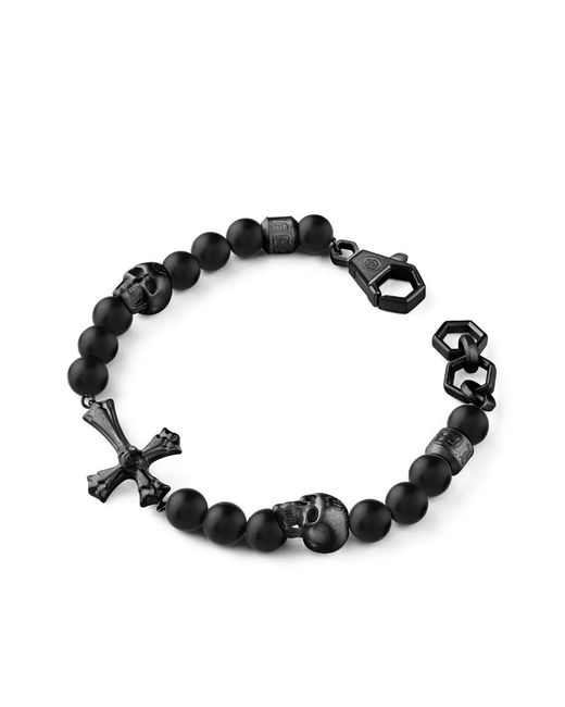 Black onyx beads skull detail crucifix detail lobster clasp closure Size: One Size. Gender: Male. Material:Metal/Onyx. Colour: black