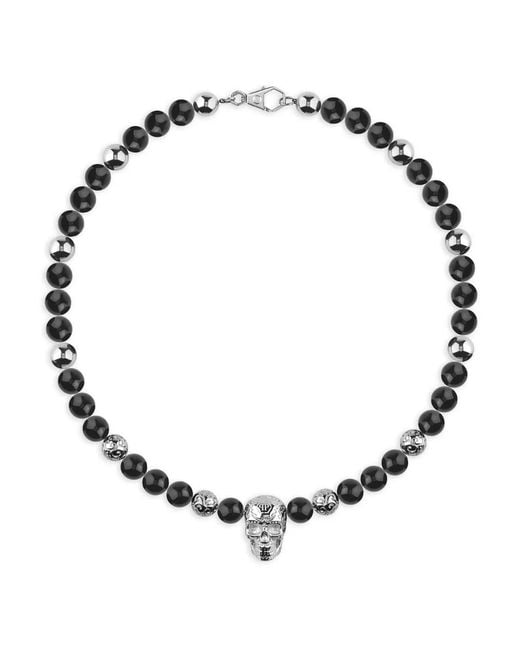 Silver-tone, black skull detail bead detailing onyx detailing lobster-clasp fastening Size: One Size. Gender: Male. Material:stainless steel/Onyx. Colour: metallic