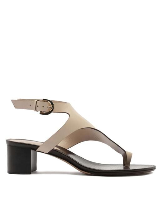Beige leather toe loop buckle fastening block heel 45mm heel Size: 35. Gender: Female. Material:Leather/Leather/Leather. Colour: natural
