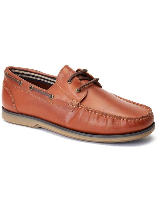 Its time to unlock your inner Boaty McBoat Face with the Stern boat shoe from Base London. Stern has been crafted from premium leather uppers and features detailed side lacing a contemporary rubber sole and an Ortholite footbed. Upper: Leather Lining: Leather Sole: TR Heel Height: 5mm Fastening: Slip On Fitting: Standard Colour: brown