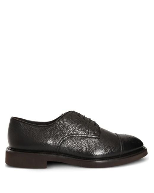 Coffee brown calf leather pebbled texture front lace-up fastening almond toe branded insole flat sole Size: 45. Gender: Male. Material:Calf Leather/Calf Leather/Calf Leather. Colour: black