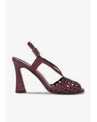 Go to FARFETCHBurgundy woven leather T-bar strap slingback strap buckle fastening high heel Size: 36. Gender: Female. Material:Polyurethane/Goat Skin/Calf Leather. Colour: pink