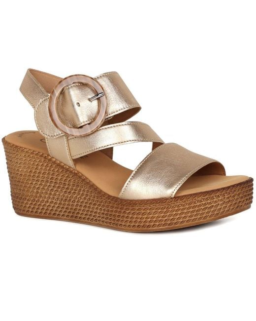 Add day-to-night summer styling to your collection with the Gabor Drama open-toe sandal. Featuring a functional rip-tape fastening concealed by a beautiful O-ring buckle, a 4.5cm heel allows you to wear for smart casual events all season long! Uppers: Leather Lining: Leather Sole: Polyurethane Width Fit: UK C+ (Gabor F) Heel Height: 4.5cm Fastening: Rip-Tape Manufacturer Code: 64.770 Colour: metallic