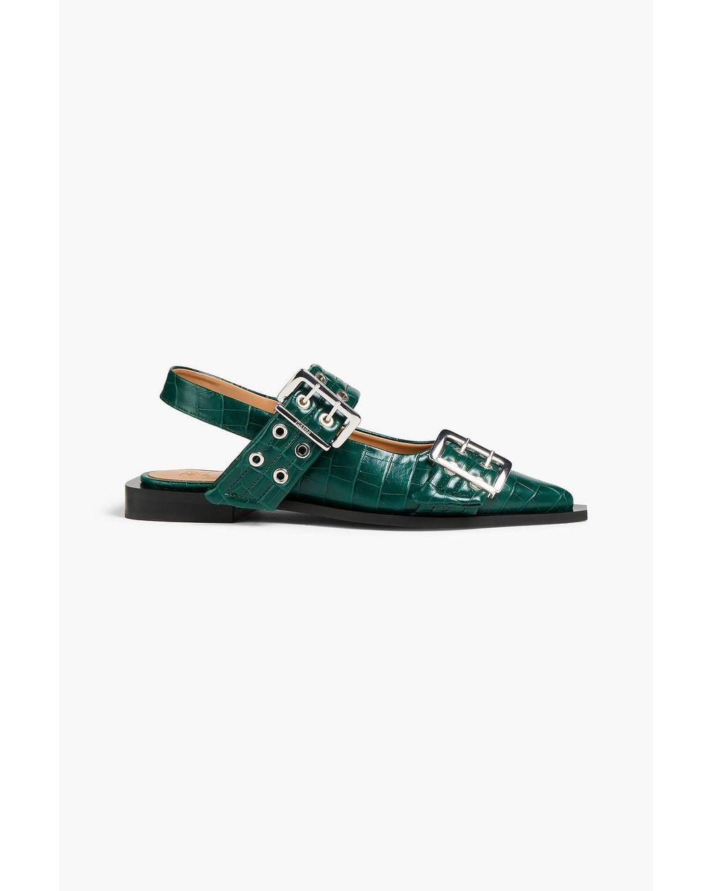 - Buckled Croc-effect Slingback Point-toe Flats