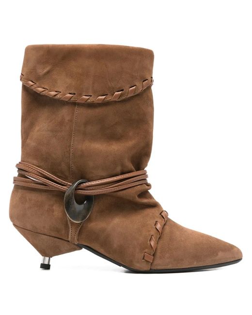 Women's Brown Ariel Braided Buckle Boots