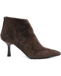 Go to BaltiniElise High heels Ankle boots in dark brown suede, pointed toe, back zip fastening, leather sole, heel 75mm, 100% suede, Made in ItalyGender: WomenMaterial: SUEDEColor: BrownMade in: ItalyProduct ID: 423443_ELISE*Import tax/duty will be