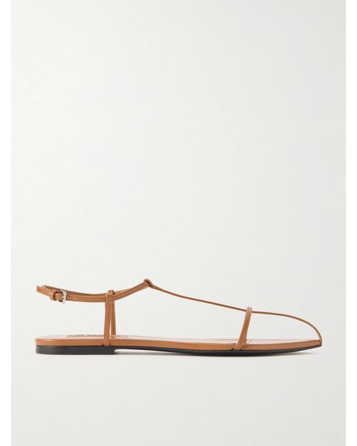 Jil Sander's 'Cage' sandals embrace the brand's minimalist roots. They've been made in Italy from leather with pointed toes and slim cage straps. Small to size. See Size & Fit notes. Colour: natural