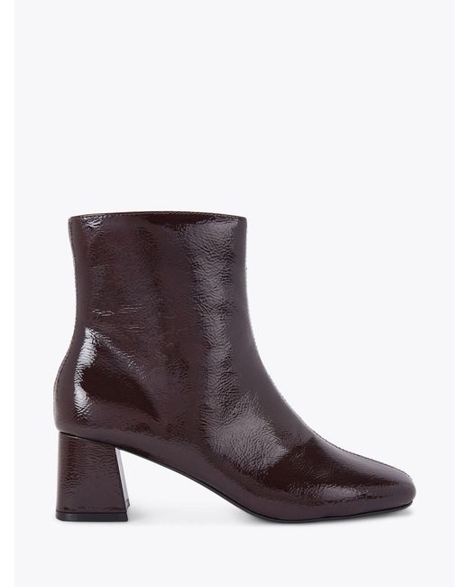 This KG Kurt Geiger Storm Boot is crafted from a wine patent leather alternative. The heel is in a block style and the squared toe is softly rounded. Heel height: 6cm. Main - 100% Polyurethane. Lining - 100% Synthetic rubber. Sock - 100% Synthetic rubber. Colour: brown