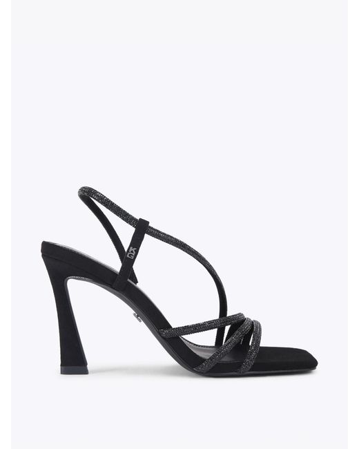 This KG Kurt Geiger Sweetie gem heeled sandals is crafted in a black with straps across the foot. The heel is in a high flared style. Heel height: 9.5cm. Main - Textile, Lining - 100% Synthetic rubber. Sole - 100% Synthetic rubber. Colour: white