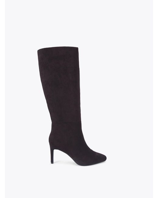 This KG Kurt Geiger Treasure is a knee boots crafted from a black microsuede. The heel is in a stiletto style and there is a small elasticated panel at the top of the ankle for flexibility. Heel height: 7.5cm. Main - 100% Textile. Lining - 100% Synthetic rubber. Sole - 100% Synthetic rubber. Colour: black