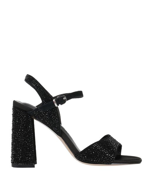 Ankle strap sandals, suede, crystals, solid color with appliqués, leather lining, buckle-fastening ankle strap, square toe, square heel, rubber sole, contains non-textile parts of animal origin. Leather.