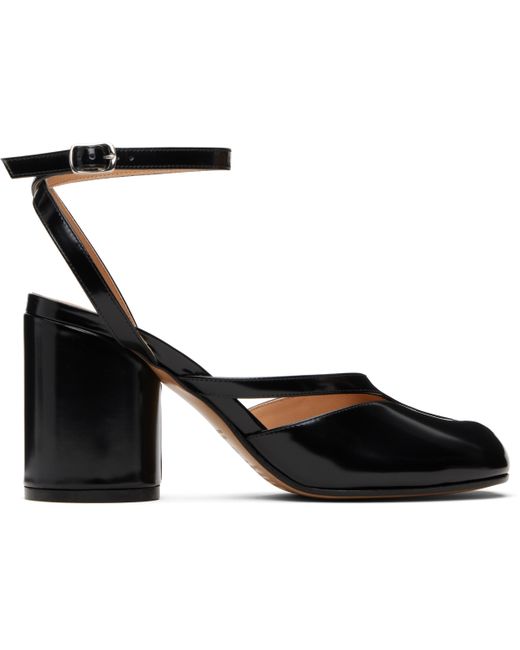 Polished calfskin heeled sandals. · Square cleft toe · Cutout at vamp · Wraparound pin-buckle ankle strap · Signature white stitch at ankle strap · Logo printed at lambskin footbed · Covered cylindrical heel with rubber injection · Smooth calfskin sole · Heel: H3.25 Supplier color: Black Colour: black