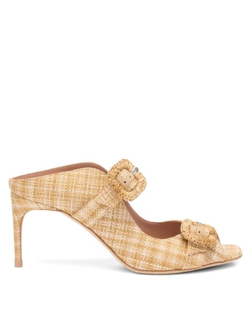 Sand beige double-strap design square open toe 70mm stiletto heel Size: 41. Gender: Female. Material:Raffia/Calf Leather/Calf Leather.