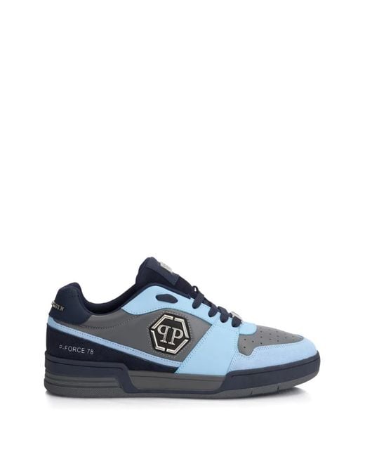 Women's Blue P-Force 78 Logo-Plaque Leather Trainers