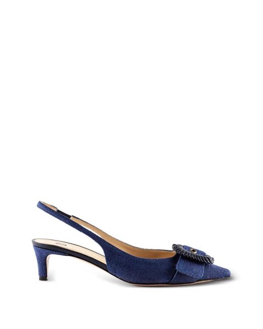 Blue buckle detail pointed toe slingback Size: 40. Gender: Female. Material:Cotton/Calf Leather/Calf Leather/Calf Leather.