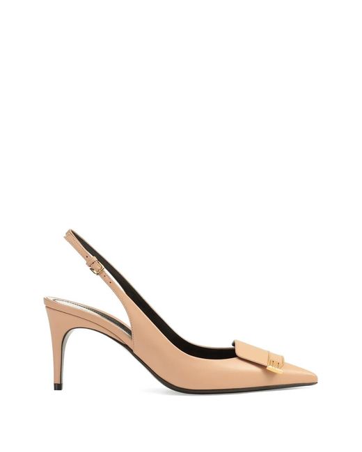 Pointed-Toe Slingback Court Shoes - Natural