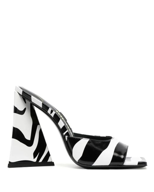 Black and white calf leather zebra print open square toe branded leather insole open back slip-on style Size: 40. Gender: Female. Material:Calf Leather/Calf Leather/Calf Leather.