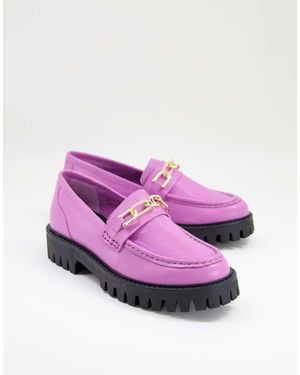 Freya Chunky Loafers With Gold Chain Trim - Pink