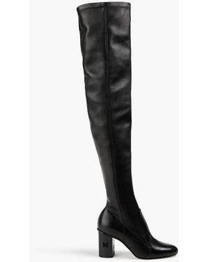Damier Leather Thigh Boots - Black