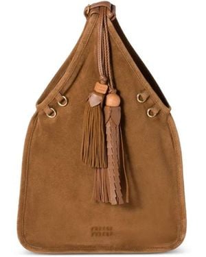Miu Miu bags blend contemporary, ornate and eclectic details with luxe materials and high quality to create a covetable range. Using a rich colour palette and whimsy flair, Miu Miu's bags mix sleek elegance and tomboy charm to create bold leather totes, fringed shoulder bags and contrast-paneled satchels. For evening occasions, Miu Miu offers an embellished and pared-back range of must-have bags and clutches.