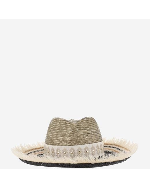 Women's Red Straw And Viscose Blend Hat With Embroidery