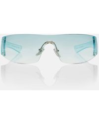 Go to BaltiniGucci Leonie Sunglasses in Baby Blue. Gucci Leonie Sunglasses in Baby Blue. Acetate frames. Lens measures approx 99mm. Bridge measures approx 1mm. Arm measures approx 105mm. Adjustable nose pads. Side GG logo with