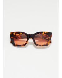 Sunglasses by Mango Serving real shade Tortoiseshell design Square frames Brow bar detail Molded nose pads Dark-tinted lenses Tapered arms. Colour: blue