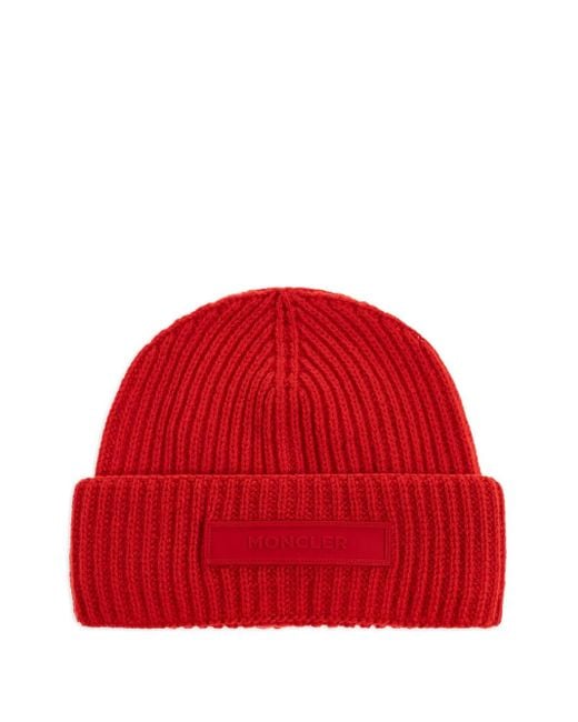 Men's Red Wool Beanie With Logo Patch