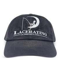 Go to FARFETCHBlack embroidered saint lettering embroidered sorayama lettering flat crown adjustable strap cotton material Size: One Size. Gender: Male. Material:Cotton. Colour: black