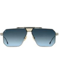 Go to FARFETCHSilver geometric frame blue-gradient lenses perforated bridge detail gold-tone temple tips silver-tone metal arms These glasses come with a protective case. Size: One Size. Gender: Unisex. Material:Titanium. Colour: blue