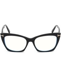 Go to BaltiniEyeglass Tom Ford Eyewear Black Transparent Cat-Eye Acetate Women. Dimensions: width of the lens 55 mm, length of the bridge 15 mm, length of the rods 140 mm. Material: ACETATE. Made in: Italy.