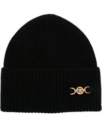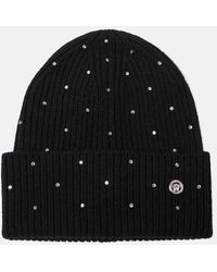 Go to FARFETCHBlack ribbed knit embroidered logo to the front pull-on style oval crown crystal embellishment turn-up brim Size: One Size. Gender: Female. Material:Cashmere/Polyester. Colour: black