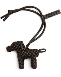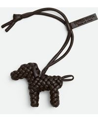 Go to Bottega VenetaIntreccio nappa leather dog charm with leather lanyard. Bottega Veneta leather tag. Leather lanyard designed to be attached to any handle. Unlined. Colour: Dark Praline. • Material: Lambskin.