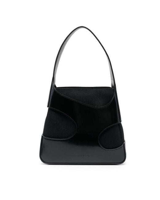 Women's Black Cut-Out Calf Leather Shoulder Bag