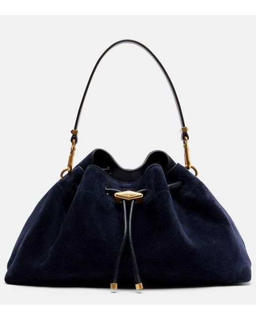 Women's Blue Cinch Suede Bucket Bag