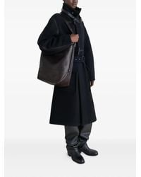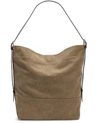 Go to La GarçonneLemaire sisal khaki tote bag with an adjustable belted vegetable-dyed leather strap in a heavy cotton canvas with a patina finish. Features an interior carabiner clasp, interior zippered pocket, and a removable bottom