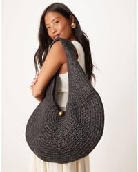 Go to ASOSAccessories by Mango Twin handles Shoulder strap External pocket Stud and tie details. Polyurethane/Polyester/Straw/Metal. Colour: brown